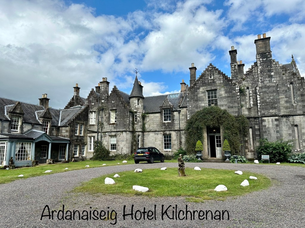 The only issue is that the tall grass hedges grow right up to the side of the road, so it is extremely difficult to see any oncoming traffic. Pauline and I were both so busy looking out for signs of other vehicles that we couldn’t take in the magnificent scenery we were driving through. It was a relief when we finally sighted the Gate House at the entrance to Ardanaiseig House and we could take in the grandeur of the location we would be staying in that night.
