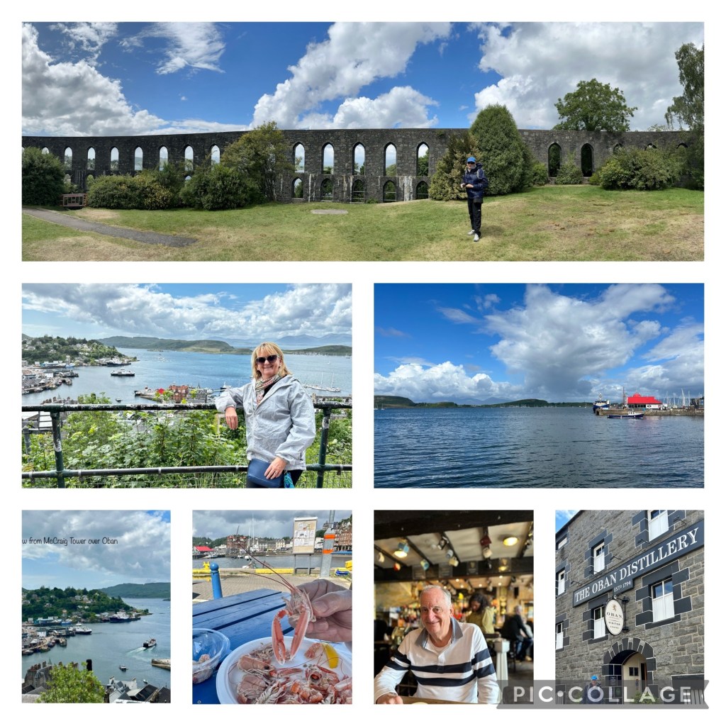 We also visited Dunollie Castle on a hill right at the harbour entrance where the large ferries heading for the Isle of Mull and Hebrides islands pass through regularly each day. The other major landmark is McCraig Tower and yes requires walking up more steep steps to get there but it is more like looking at a Roman Colosseum (albeit round rather than oval shaped) than a tower – it was never finished after McCraig passed away, which is a pity as it towers imposingly over the town.