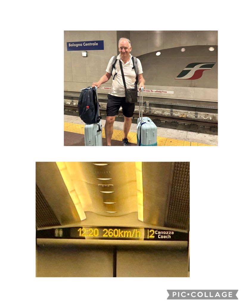 We are currently on a high-speed Italo train travelling at 260 kph through the countryside to Rome, our next stop on our adventure in Europe. We should get to our hotel right on Happy Hour with train travel in Italy so efficient and timely and then “Wine will be Calling Us” after a big day.