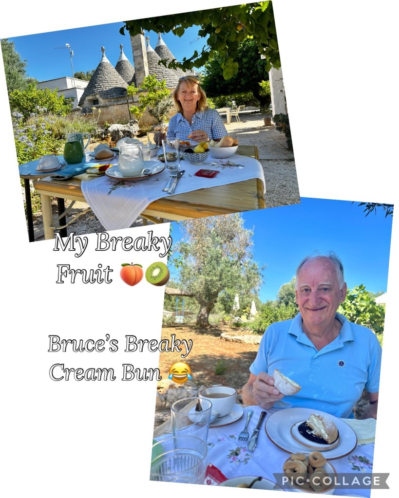 After a late breakfast the next morning sitting out in the courtyard, which included these amazing custard filled buns we headed off to explore the region driving through the trulli countryside on our way to Locotrondo.