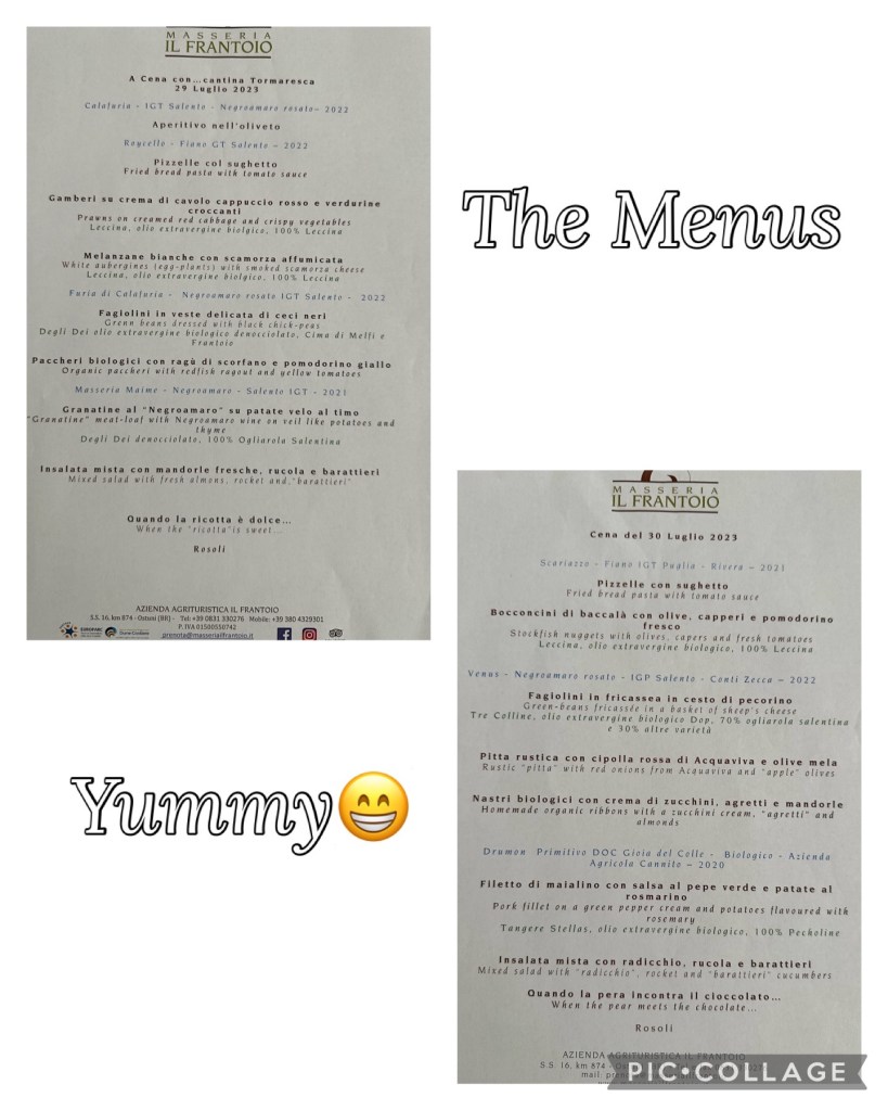 That night we were back at the Masseria for dinner and this time we were booked in for the “Journey to Tradition” dinner. What was the difference you may be asking – well the night before had been an 8-course menu with 4 wines (normally 3 wines but the winemaker added an extra on the night for tasting) while this evening it was a 6-course menu with 2 wines but with differing menus. Notwithstanding the smaller menu we were just as full at the end of the evening as the previous night and ended up not even staying for the aperitif. Again, at the end of the evening the owner provided us a copy of the menu as a keepsake which is such a lovely touch.