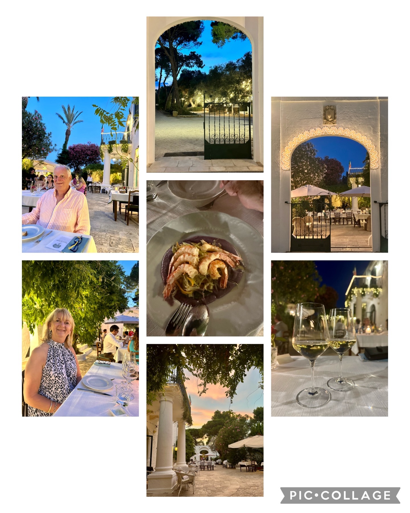 We had pre-booked dinner at the farmhouse that night that they called “Trip to Tradition” which we were unsure what to expect other than it was a degustation dinner. It commenced with a wine tasting in the pool area with a local wine maker followed by the owner taking all guests on a tour of the property explaining its incredible history, the secret and walled gardens, the museumin the cellar that looked like inside a grotto where the olive oil was originally manufactured with all the equipment still in place and finally part of the family’s original living areas. From there it was into the amazingly lit open courtyard under the stars for dinner with the owner coming over personally to our table as each of the eight courses and its origin were explained to us – similar with each of the wines served including, interestingly, its alcohol content which is something we do not find in Australia.