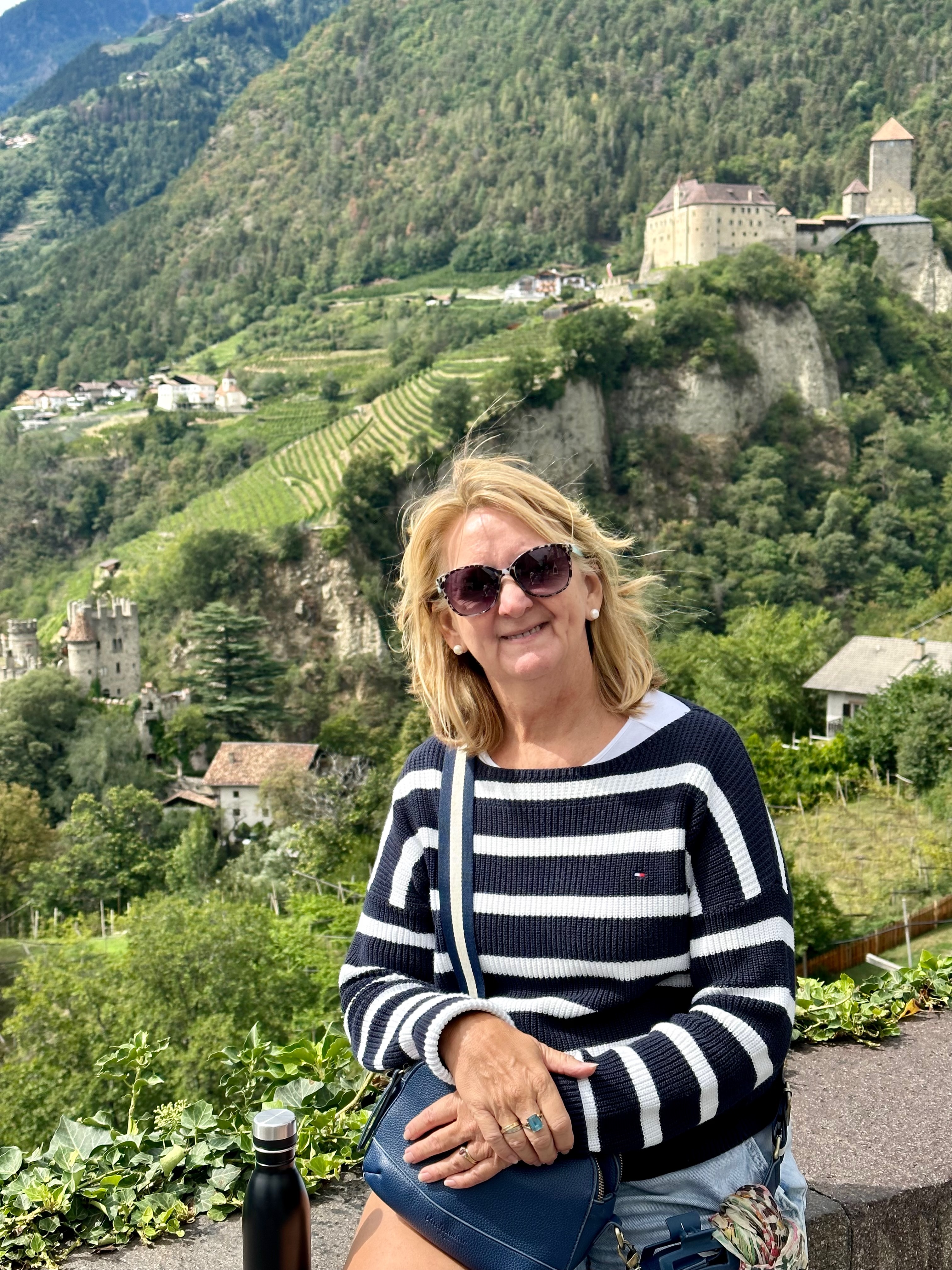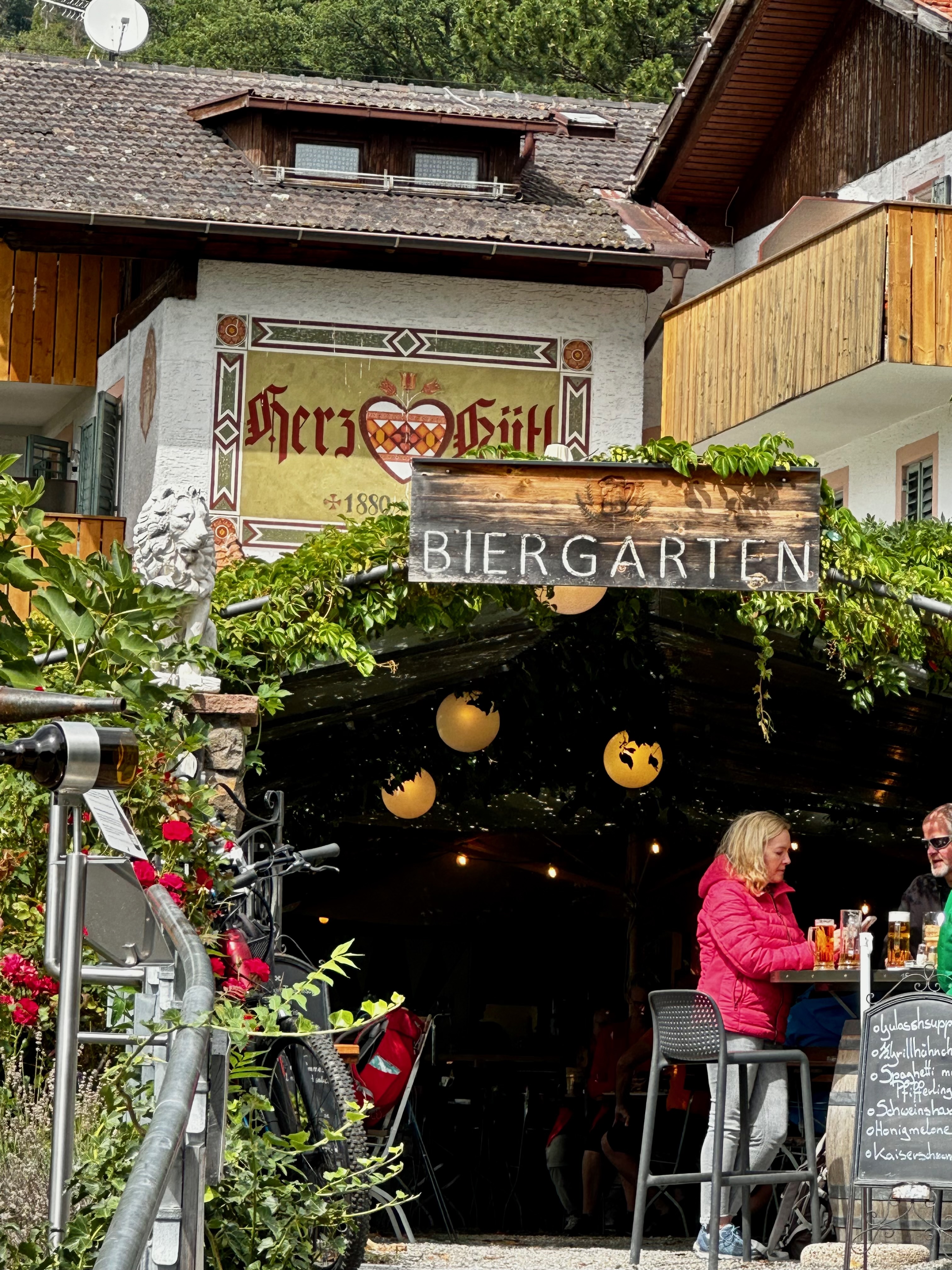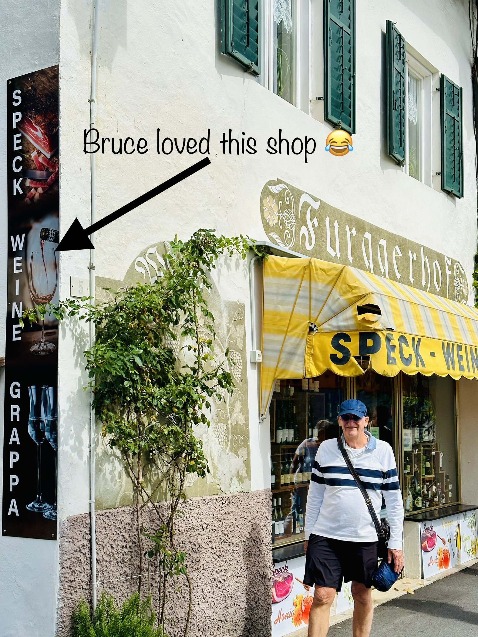 We gave up on visiting Castle Tyrol which we could see in the distance and took a photo instead and looked around the quaint shops in the village such as the local wine shop and Beirgarten which I certainly enjoyed better than the retail shops down in Merano.