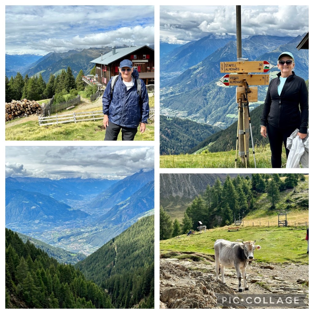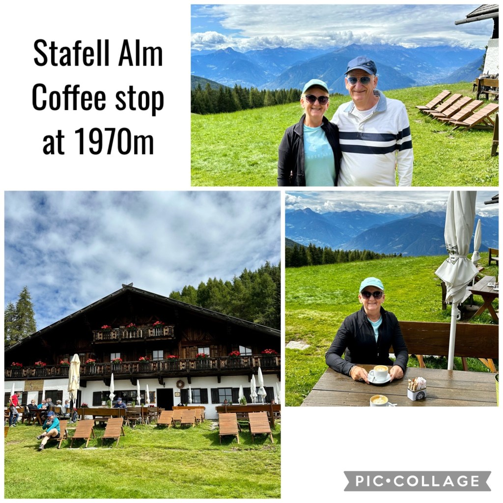 When we reached Merano the road narrowed considerably into a two-lane winding road on the way through the Alps up to a tiny village of Salthaus. I was concentrating so hard to stay on the road up that I did not appreciate the surrounding spectacular mountain scenery or more notably the scary cliff face I was negotiating although Pauline could in the passenger seat. I certainly discovered the cliff face the next day and then thought I should had let Pauline drive that leg.