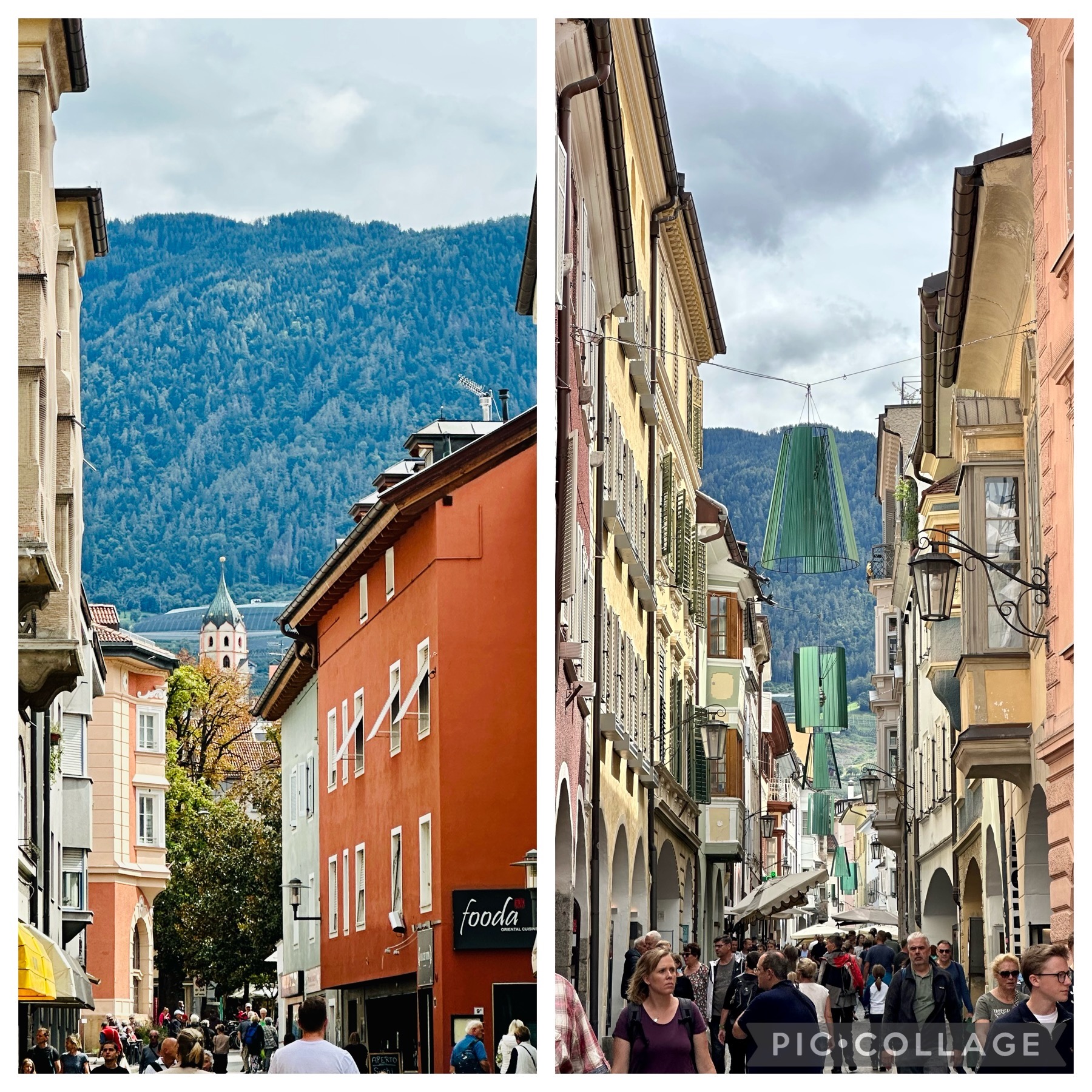 Merano ended up being a surprise for us, since it was an old spa mountain town not far from the Austrian border but had the fantastic Laubengasse shopping street with all the global labels represented set in the valley with a backdrop of the alps rising on all sides. Pauline was ecstatic as she strolled through the mall, I was just taken by the architecture of the buildings and the magnificent views.