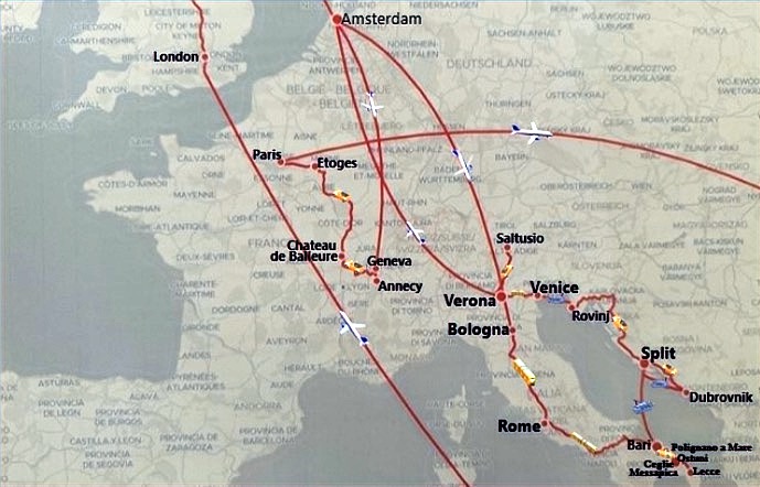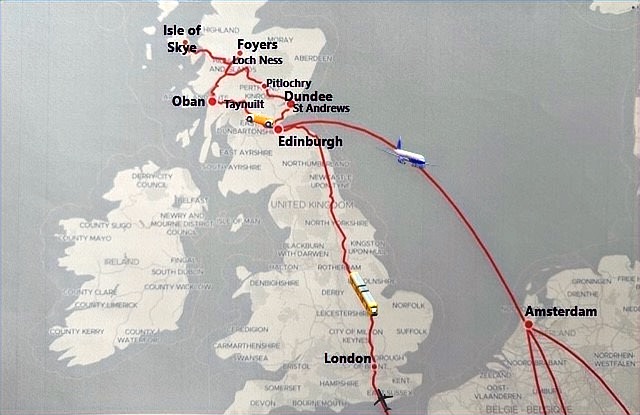 Our route over 5 countries covered the UK, including London, Edinburgh and the Scottish Highlands, the Netherlands, Italy, Croatia and France with travel by plane on 4 occasions (excluding the flights to and from Australia), 4 cross-country train journeys, 4 individual car hires over 3 countries and finally the small boat cruise.. We have attempted to capture the various towns and cities along our route in the maps of the UK and Europe below.