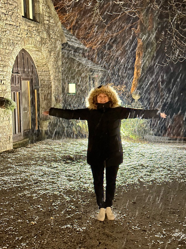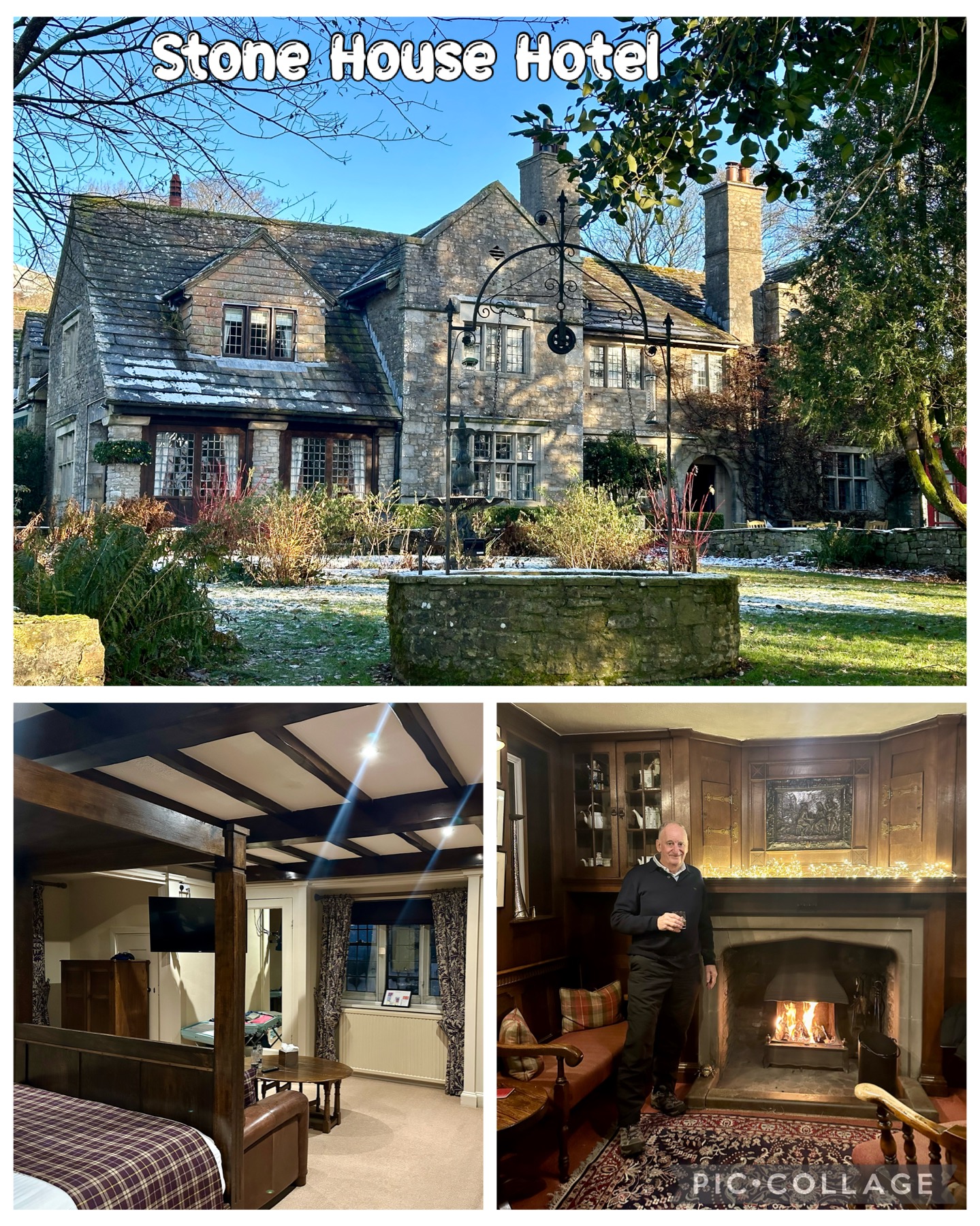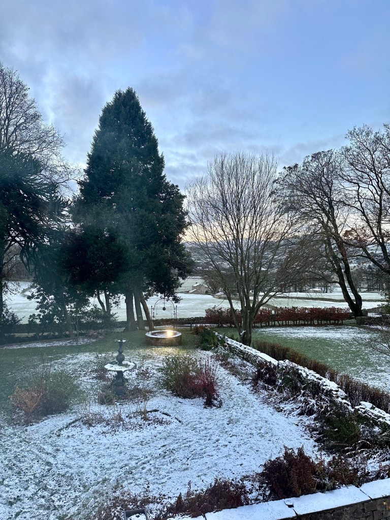 We eventually arrived at our accommodation after over 30 hours of travelling, a beautiful old manor house, Stone Hill Hotel overlooking the local town of Hawes in the middle of the Yorkshire Dales. To greet us was a roaring open fire in the bar so we collapsed in one of the chesterfield lounges and enjoyed a well-deserved prosecco for Pauline and, of course, an Islay scotch for myself. Arriving in such a cosy hotel with snow all around outside suddenly made the pain of long distance travel all worthwhile.