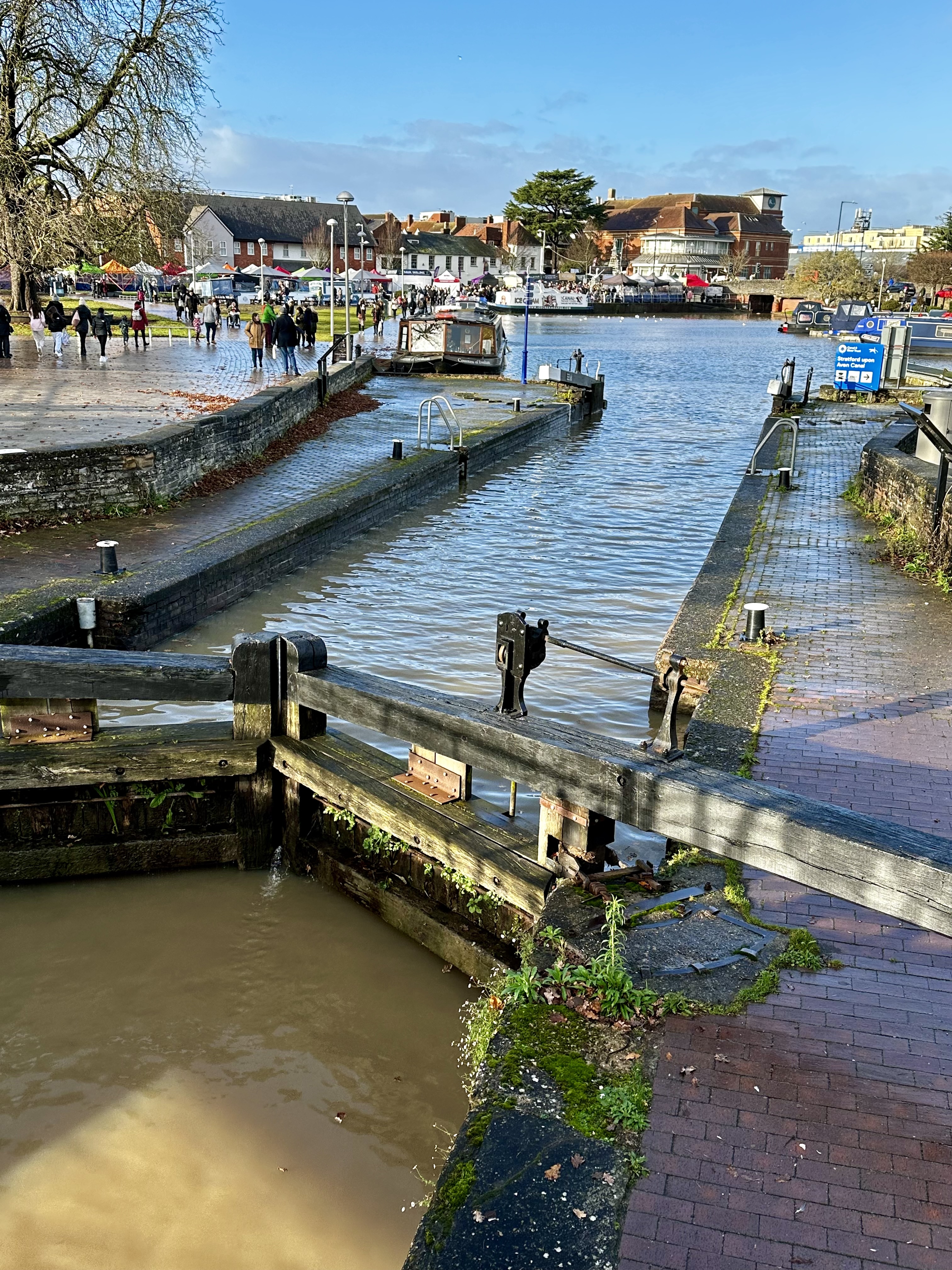 The next morning, we were planning to visit Warwick Castle but at breakfast we overheard that at Stratford-Upon-Avon there were large Christmas Markets with over 300 stalls, so we decided to risk getting caught in the crowds and headed over there. We struck it lucky in getting a parking spot and couldn’t believe how popular these markets are snaking their way down every street in the town. As was the case in York they were more markets at Christmas time than Christmas Markets, but the atmosphere was nevertheless very festive. We had not been to Stratford on Avon since we visited there with our children, William & Portia back in 2010 so it was good to walk around the town and see Shakespeare’s Birthplace, the Royal Shakespeare’s Theatre and the canals and locks along the river which was almost ready to break its banks after the heavy rain they had had. What caught our eye was the white swans swimming around the river and the size of them – truly magnificent birds and very comfortable with humans close by.