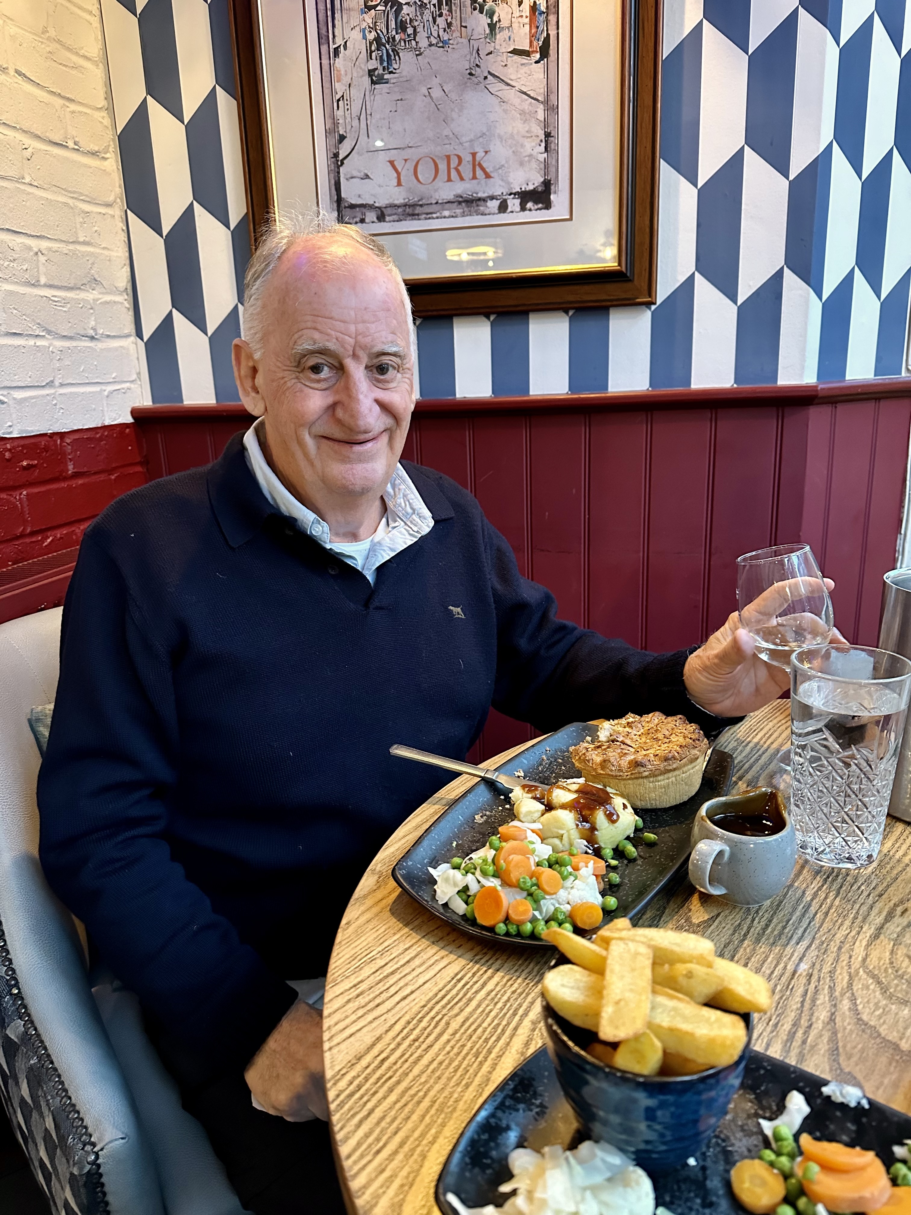 After the Museum it was onto a road mini train that takes you through the city around to York Minster. York Minster is the second largest Gothic Cathedral in Northern Europe behind the Cologne Cathedral and dates to the 7th century. They impose a considerable charge to visit inside the cathedral to assist pay for upkeep and since we had seen it previously, we decided against going inside on this visit and instead headed for a warm pub for lunch and, course some vino.