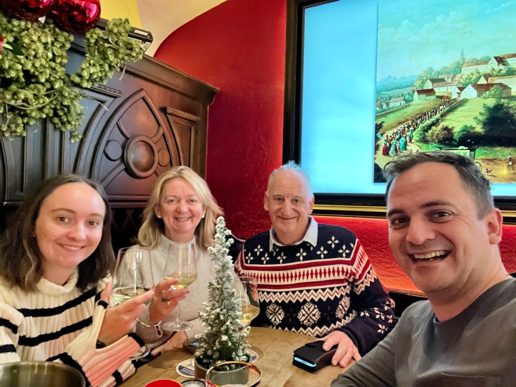 The train from Berlin to Munich was fast and uneventful but given that it was Christmas time I was very glad that we had pre-booked the seats as it was very crowded and chaotic. While the service on the train was certainly not as good as what we experienced on the Italian trains during “The Summer Vintage” Tour we nevertheless managed to secure bubbles for Pauline and Portia, for me it was a local red wine which we certainly enjoyed over the course of the 4-hour journey.