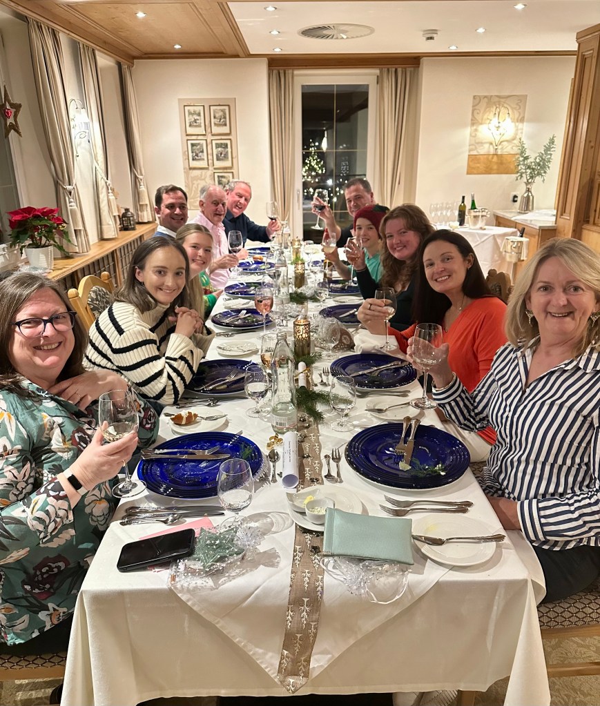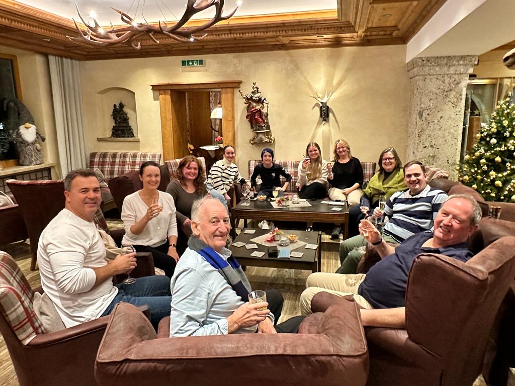 Melinda, Darren, Trinity and Lincoln were arriving in the late afternoon following a 13 hours train trip across Europe so some of us planned to welcome them at the train station while others would lay in waiting in the bushes outside the hotel to ambush them with snow balls – it turned out being a tremendous introduction to Seefeld for them (just what you need after a trip of that duration) and then it was into the warmth of the hotel and a well-deserved drink followed by our first dinner all together. The family was now complete for our white Christmas. It had been a long journey via many different routes across the world but here we were, together in Seefeld, Austria, a truly magical location with heeps of snow and high majestic mountains all around us. Pauline and I both felt enormously blessed.