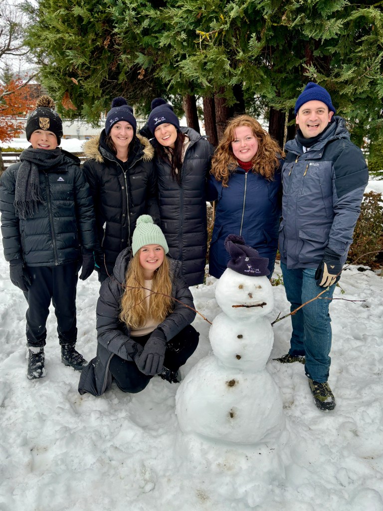 The next day we were a bit slow getting started, but the first task was to build a snowman outside the entrance to the hotel not to mention another round of snowball throwing – a lot of fun.
