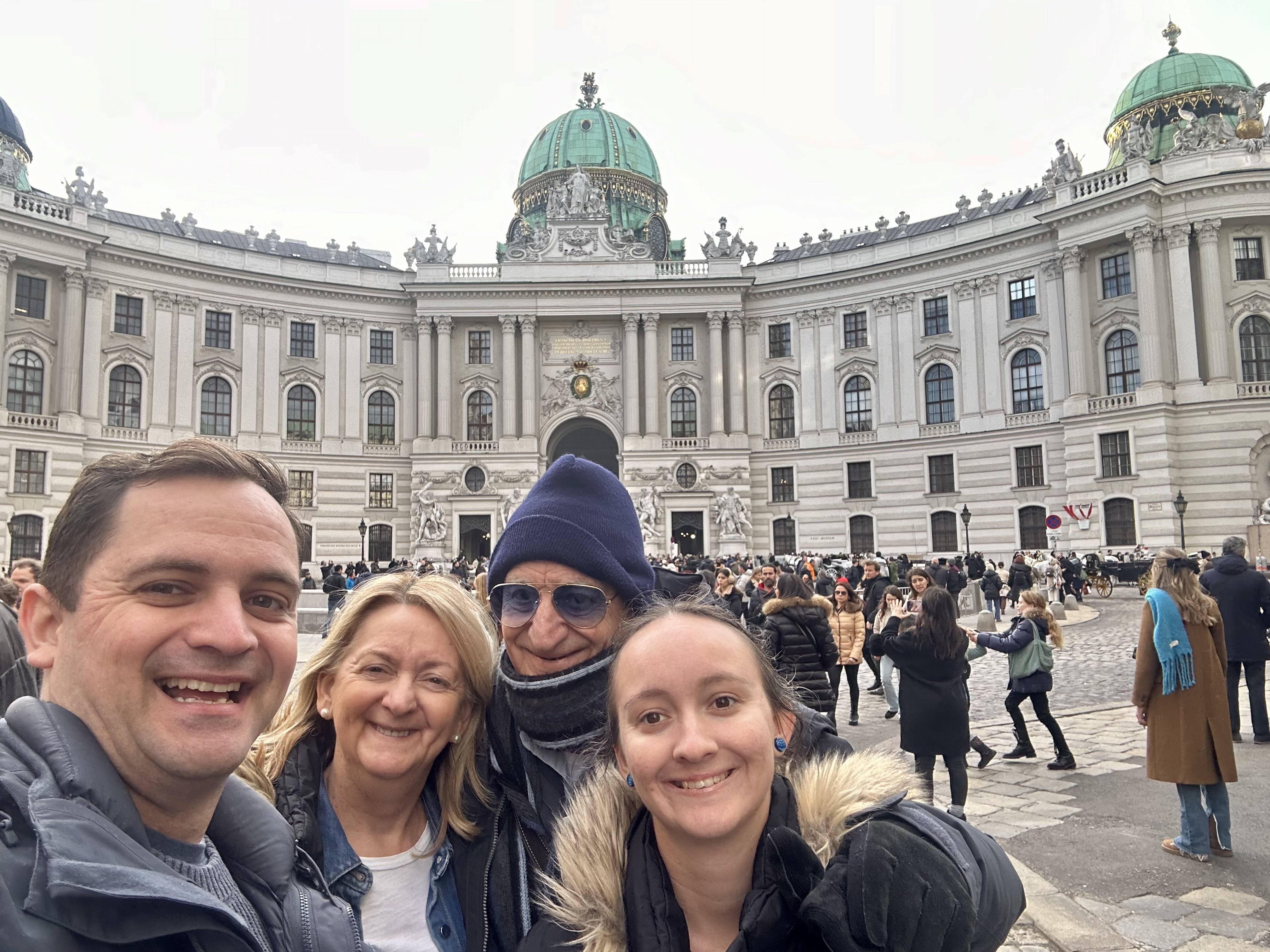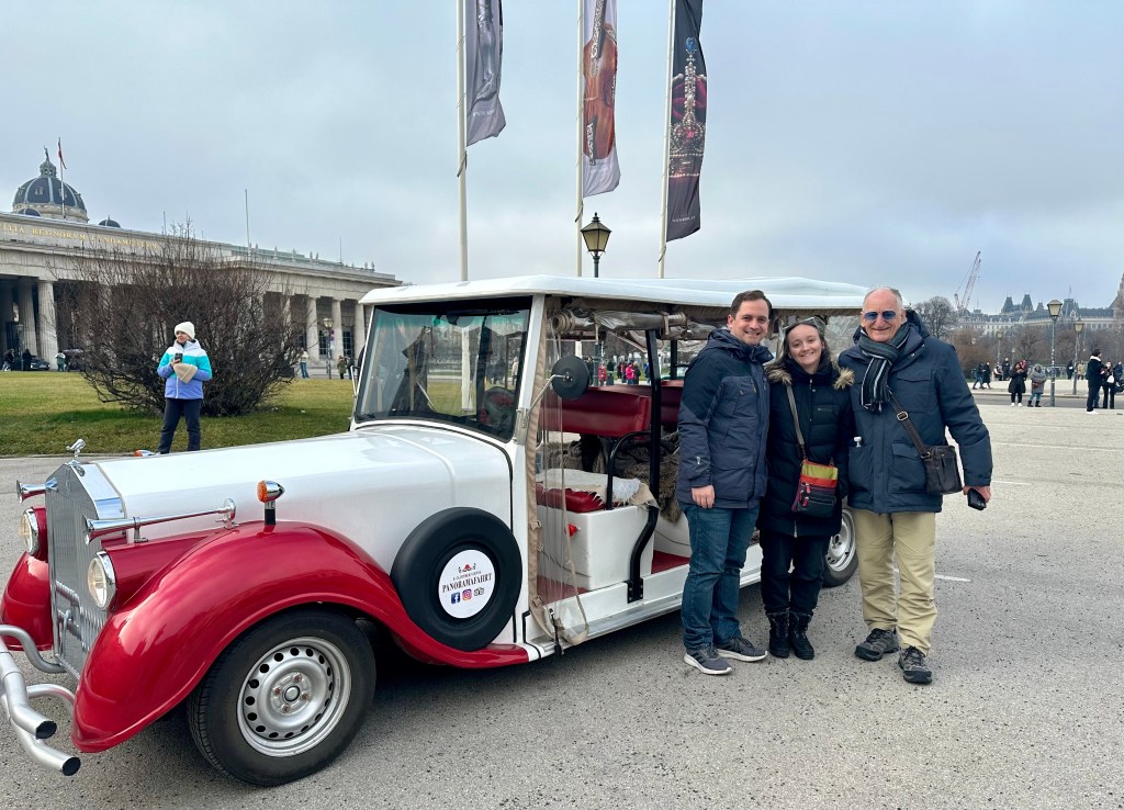 The next day we found a local café for breakfast along the river. Pauline and I had arranged another surprise activity for our time in Vienna, so we headed for the meeting point where we would be met by a vintage car to take us on a sightseeing tour around the city complete with bubbles to enjoy during the trip. William and Portia were very surprised when the car turned up as they thought it was going to be the usual walking tour. It turned out to be a fantastic way to explore this amazing city and to get our bearings for further exploring over our remaining time in Vienna.