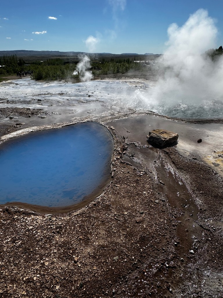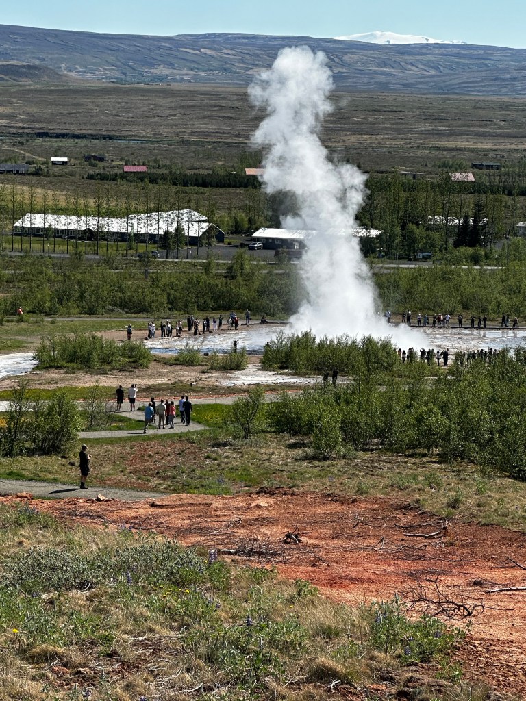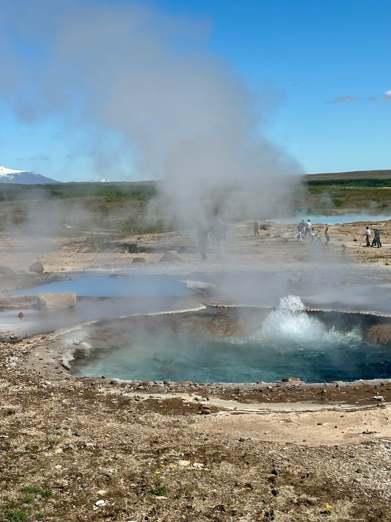 A short distance inland from Fludir was the famous Geyser area where “geysers’ got their name from with hot water spraying up into the sky at frequent intervals from both small and large geysers across the surrounding landscape.