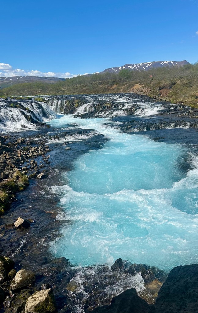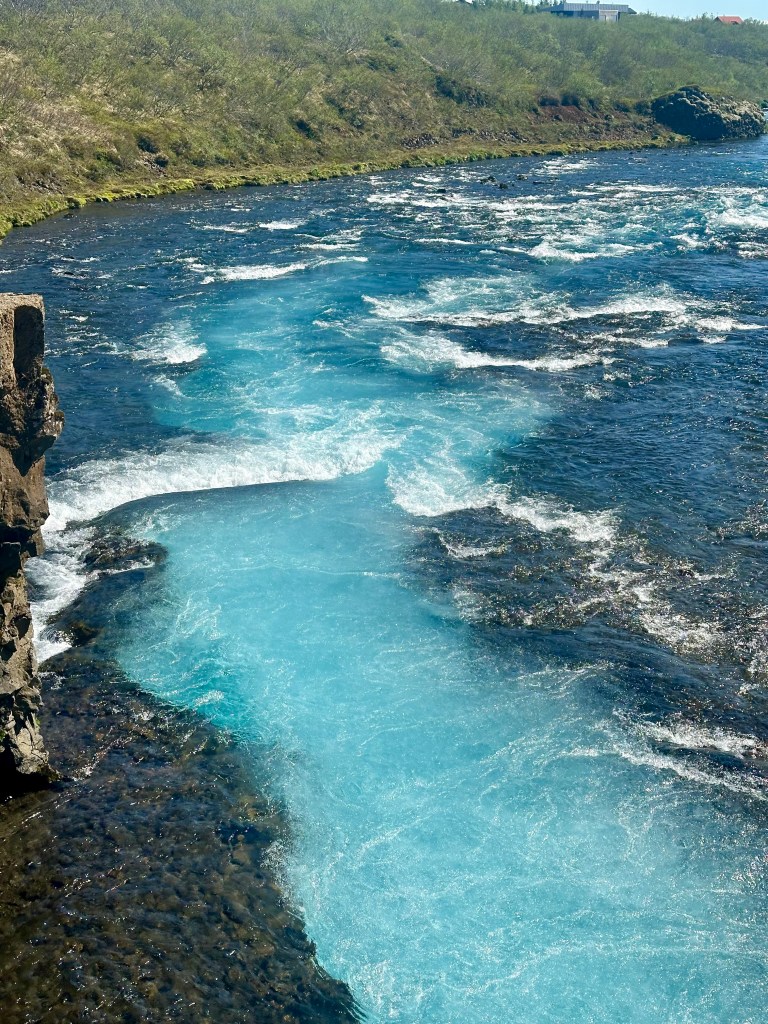 After leaving Fludir we had a short drive detouring off the main road to the Bruarfoss Waterfall, Iceland’s bluest waterfall with amazing turquoise water created by glacial melt from the Langjokull Glacier – simply stunning.
