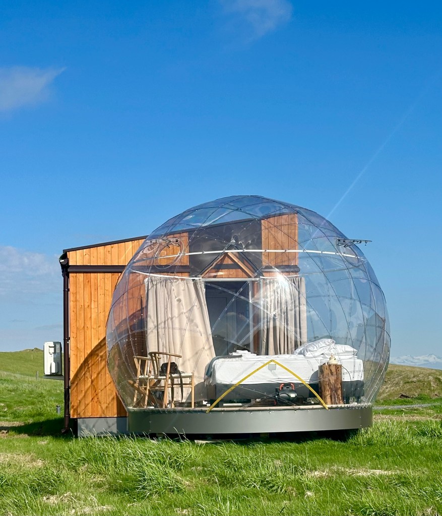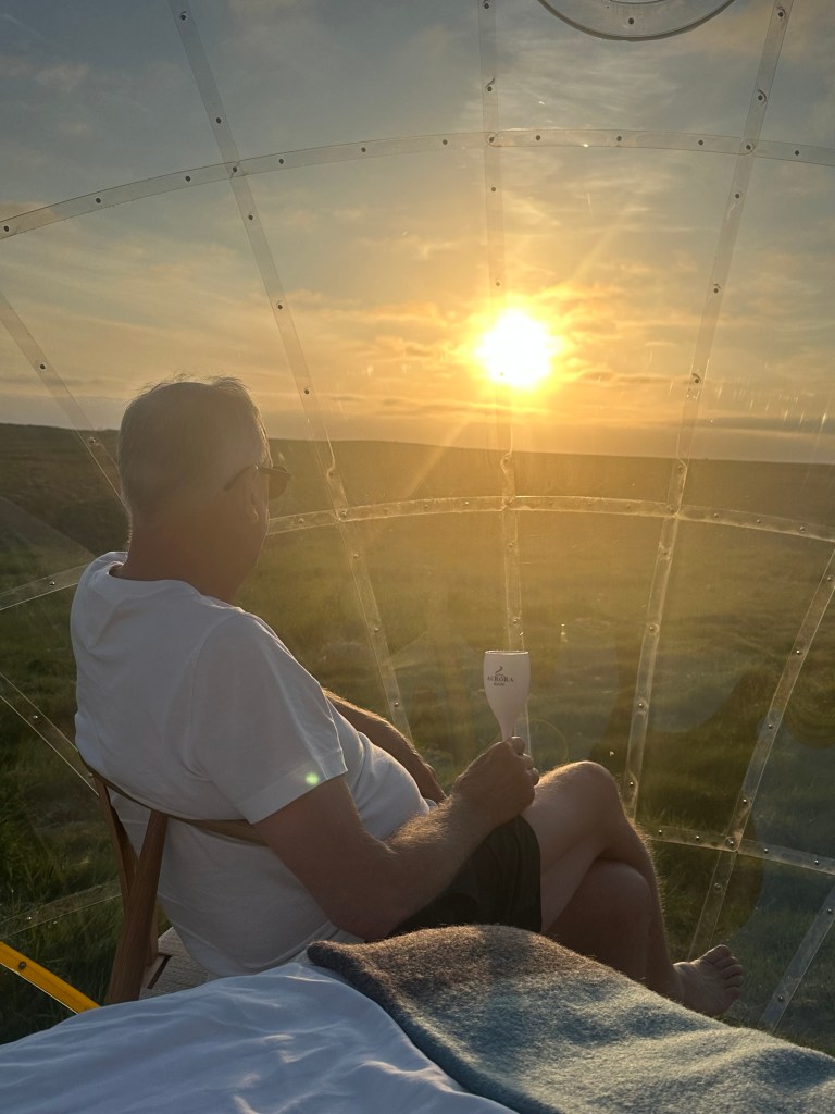After a day of incredible landscapes, we were excited to drive to our overnight stop, Aurora Igloo. On arrival the view presented from the car was a line of glass igloos located out in a field, some with attached wooden facility huts and others just with the glass igloo. There was only a handful of other tourists there when we arrived and it was like we had the place to ourselves.