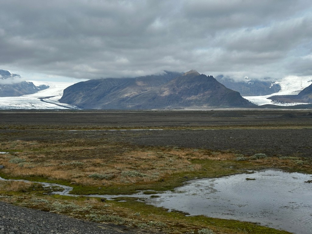 The landscape in Iceland is difficult to capture in words with volcanic snow-covered mountains ending in spectacular cliffs down to the lava plains stretching all the way to the North Atlantic. As a result, you drive along these incredibly long straight road sections through the grass covered lava plains that seem to go on forever like what I imagine would be the experience of driving over the Nullarbor back in Australia.