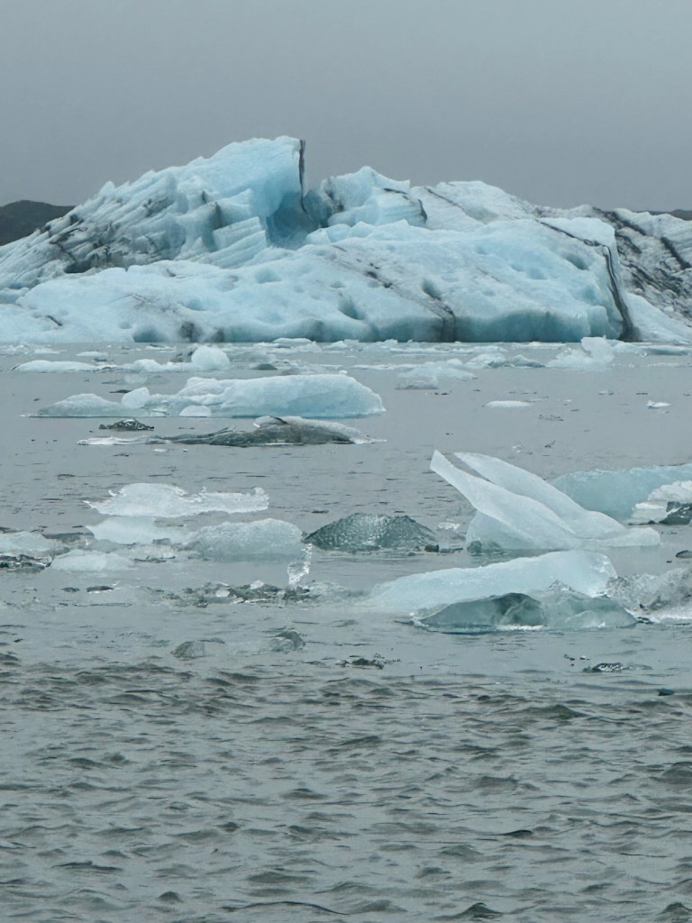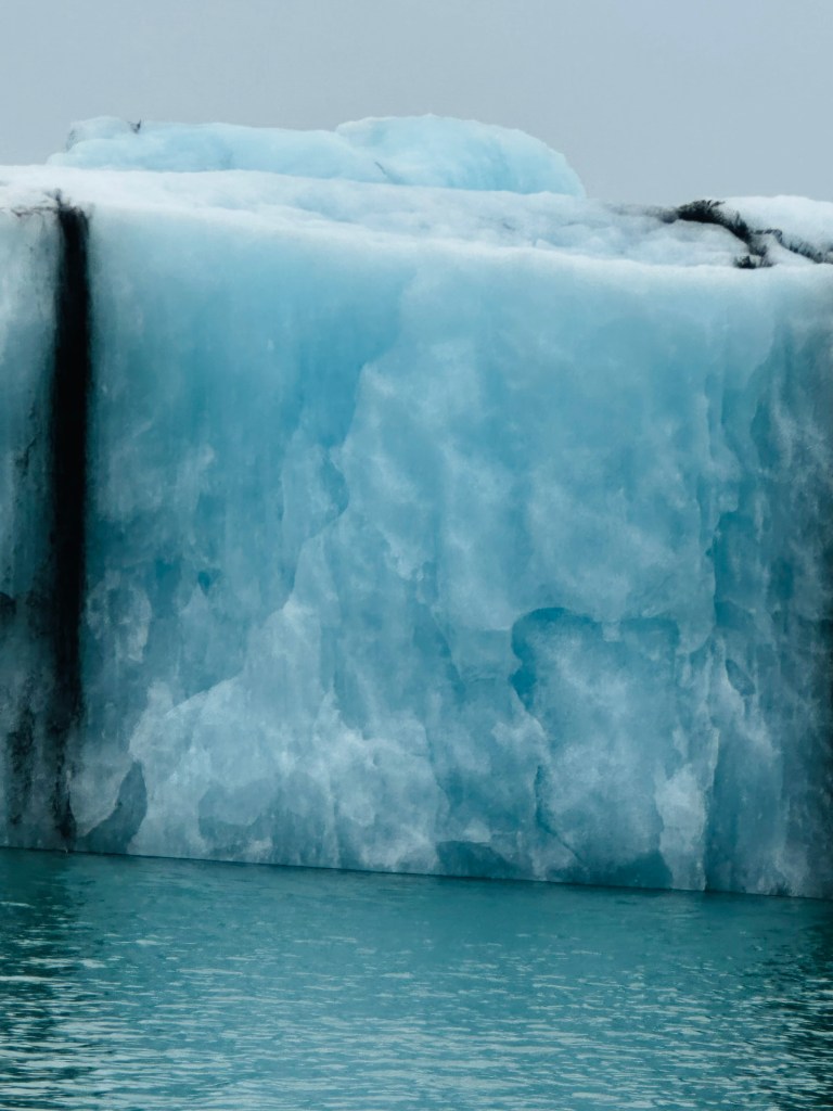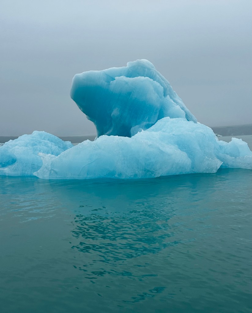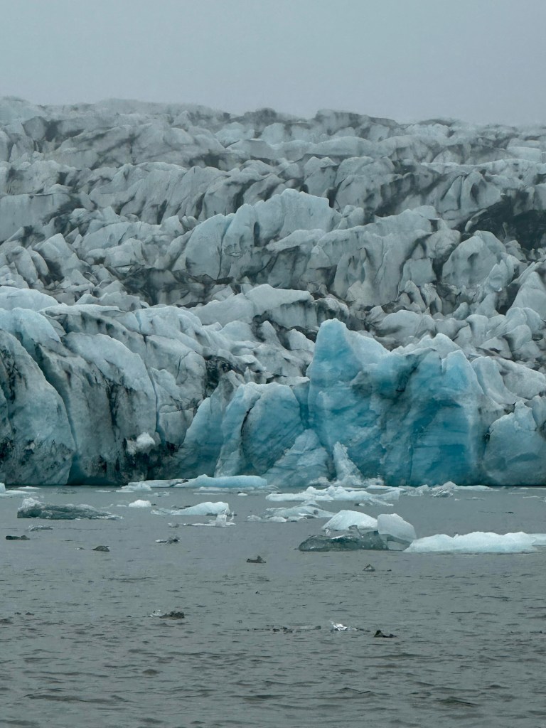The trip on the zodiac lasted over an hour and although it was cold on the water proved to be an incredible highlight among so many on our Icelandic adventure with the boat taking us up the lagoon through all the icebergs up to the head of the glacier, sighting various species of seals on the way resting on the floating icebergs.