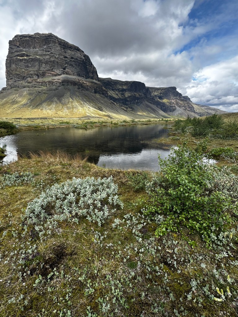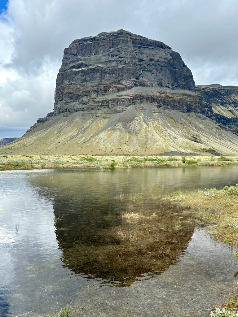 After leaving the Fosshotel Glacier Lagoon we drove back along the highway towards the quaint town of Vik. Along the way we stopped off at the breathtaking Lomagnupur Mountain, one of the most recognisable mountains in Iceland with its flat peak being estimated at over a million years old and its bottom layer, comprising layers of lava and sediment around 2.5 million years old. In front of the mountain is a reflective lake projecting the mountain on the water’s surface.