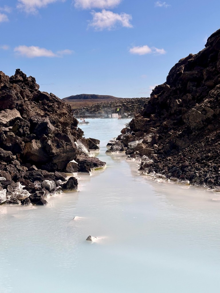 In recent years volcanic eruptions have threatened the Blue Lagoon and as you drive in you can see how close the lave flows have come to wiping the lagoon out. Huge earth walls are now being constructed around the perimeter to provide a levee bank to protect it.