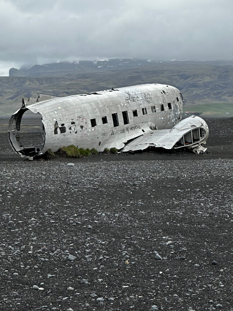 On one of the black sand beaches on this part of the coastline called Solheimasandur is the fuselage of an old US navy transport plane that crashed landed on the beach back in 1973 and was then abandoned. It is now a tourist attraction where you can either catch a 4WD bus out to the wreck from the highway or walk an hour across the leva rock landscape – given the cold wind we chose the bus both ways, but it is an extremely bumpy ride along the lave rock track. Interestingly, unlike most other attractions you can walk inside the wreck without limitation and without a charge which is rare these days – a remarkable sight located in an incredible moon-like landscape.