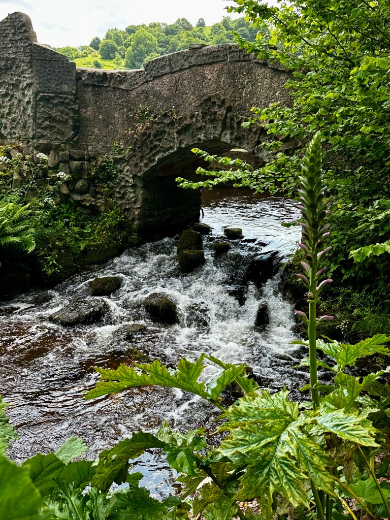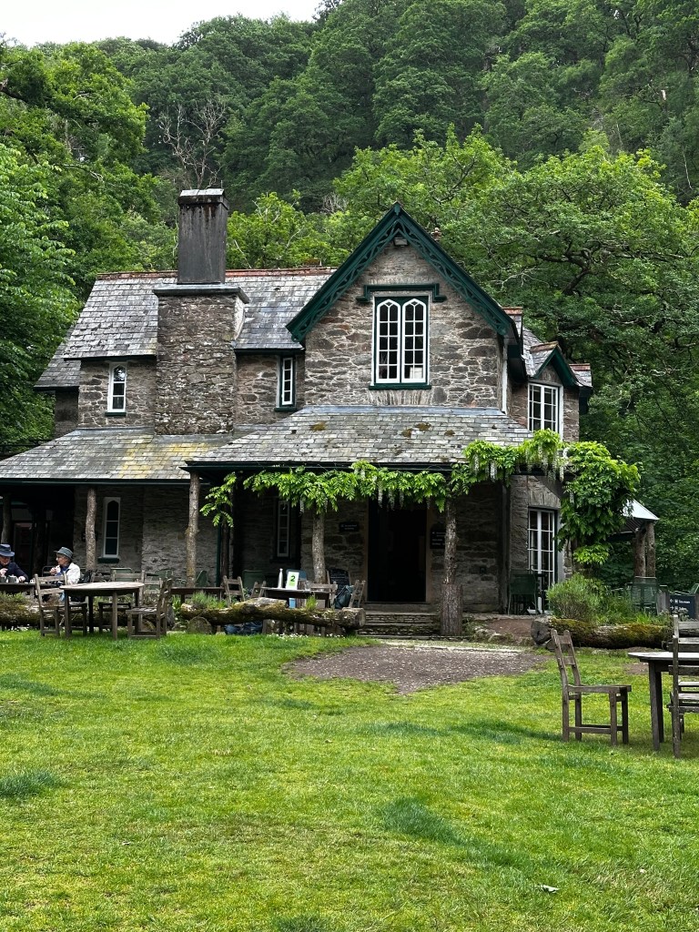 Normally you can drive directly up to the Watersmeet car park from Lynmouth, but a recent landslide had wiped the road out and it was closed so we thought we would not be able to get there. Fortunately, the lady at the local Information Bureau provided us with an alternate route coming in from the mountains so after a longer drive we made it to the car park and completed the walk down into the valley to find at least 12 people sitting outside in the cleared grass area having a very serene experience in the bush with a quaint cottage serving drinks and snacks (amazing location for a cafe although not sure how they get their supplies in from the road). We joined them, it had been worth the effort in getting to this magic place.
