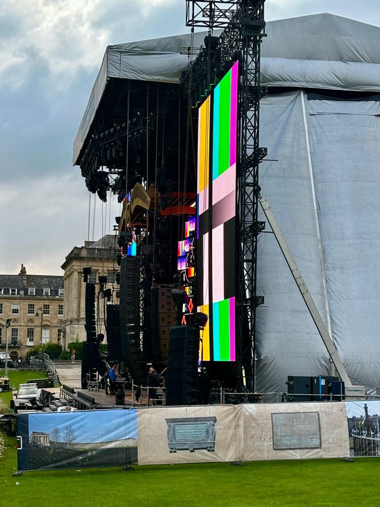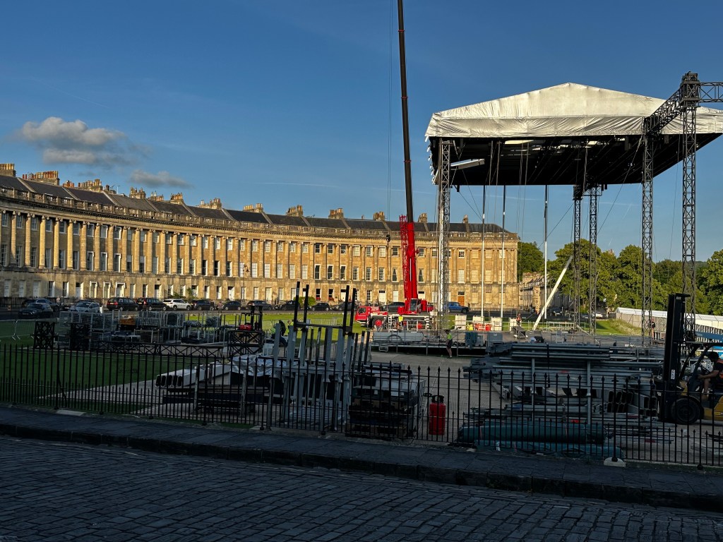 On arrival at the Royal Crescent we found to our surprise that on the lawn in front of the terraces was a huge stage being constructed for a Robbie Williams Concert being performed on the upcoming weekend. As impressive as the stage was it certainly detracted from the view of these impressive terraces overlooking Royal Victoria Park and down to the city.