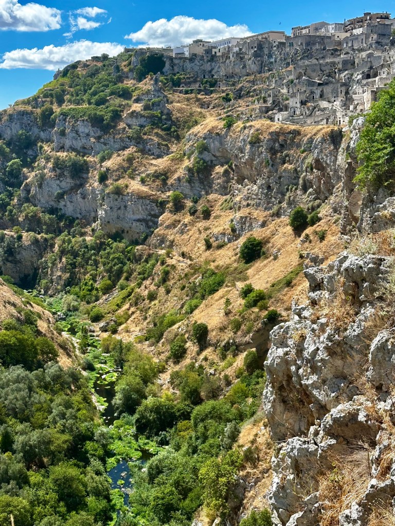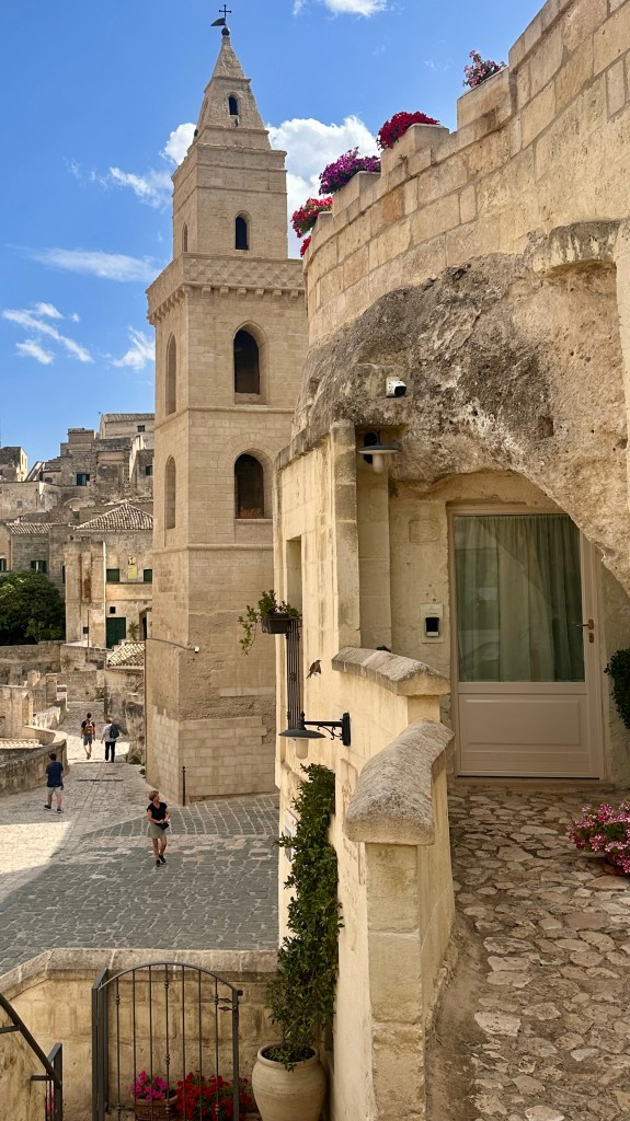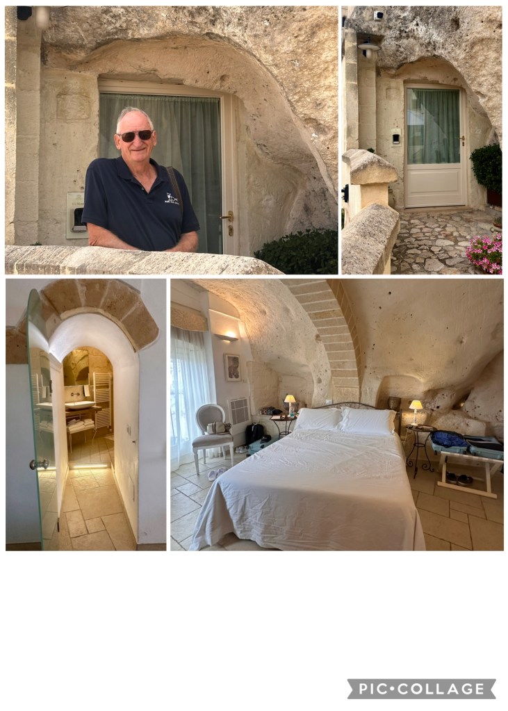 We had booked into Palazzo Degil Abati Hotel which was located on a cliff overlooking the “Sassi” area, a complex of cave dwellings carved into the mountainside. Our room was located at the front of the hotel and was a cave built into the cliff face with access to the bathroom requiring you to remember to duck your head each time to access. It provided a great introduction to the cave dwellings we would see later exploring the Old Town albeit in a lot more comfort than those inhabitants endured all those years ago.