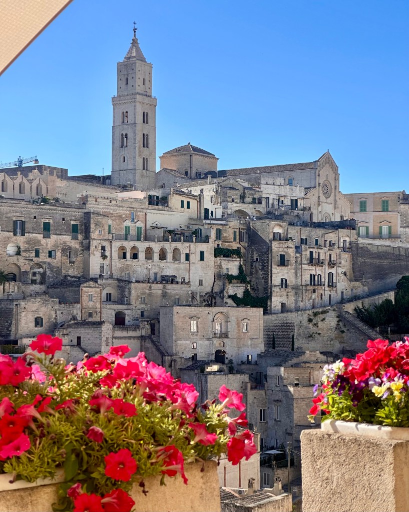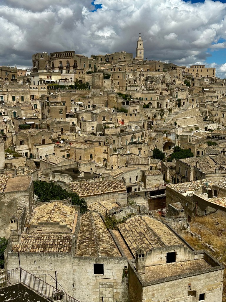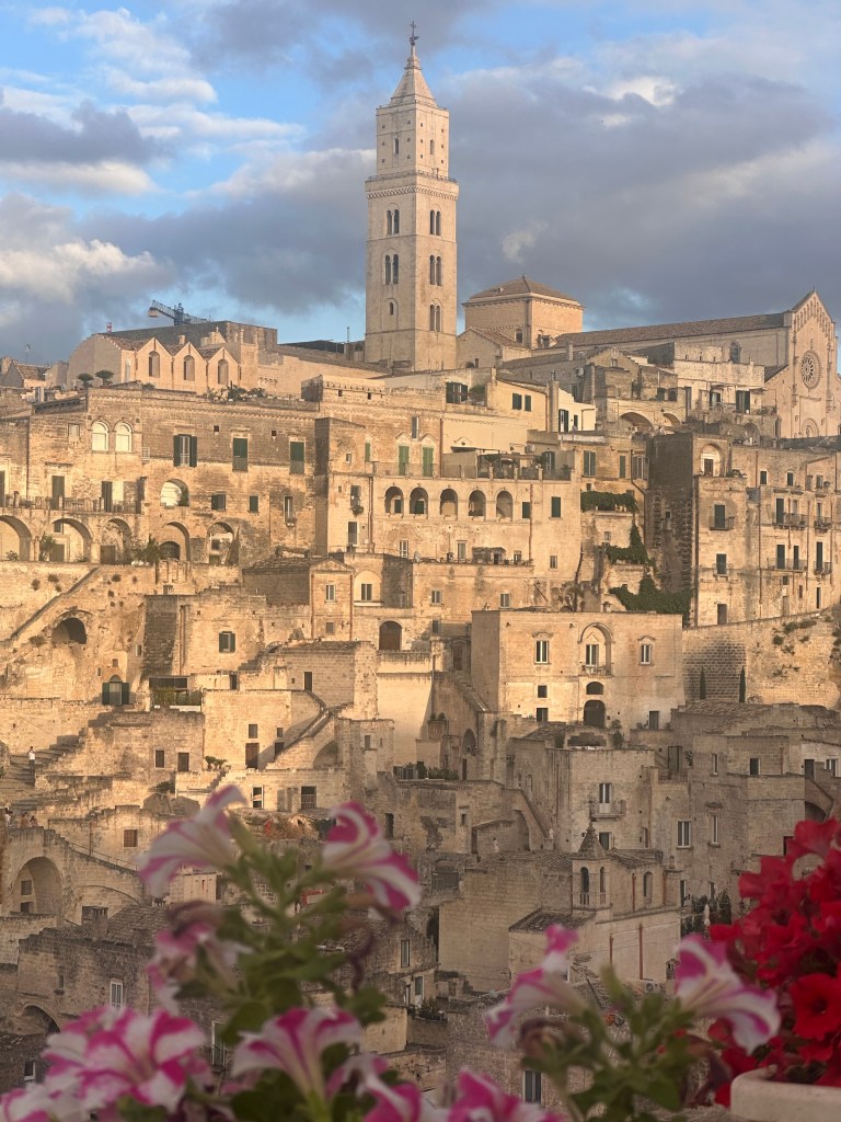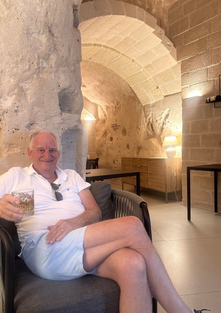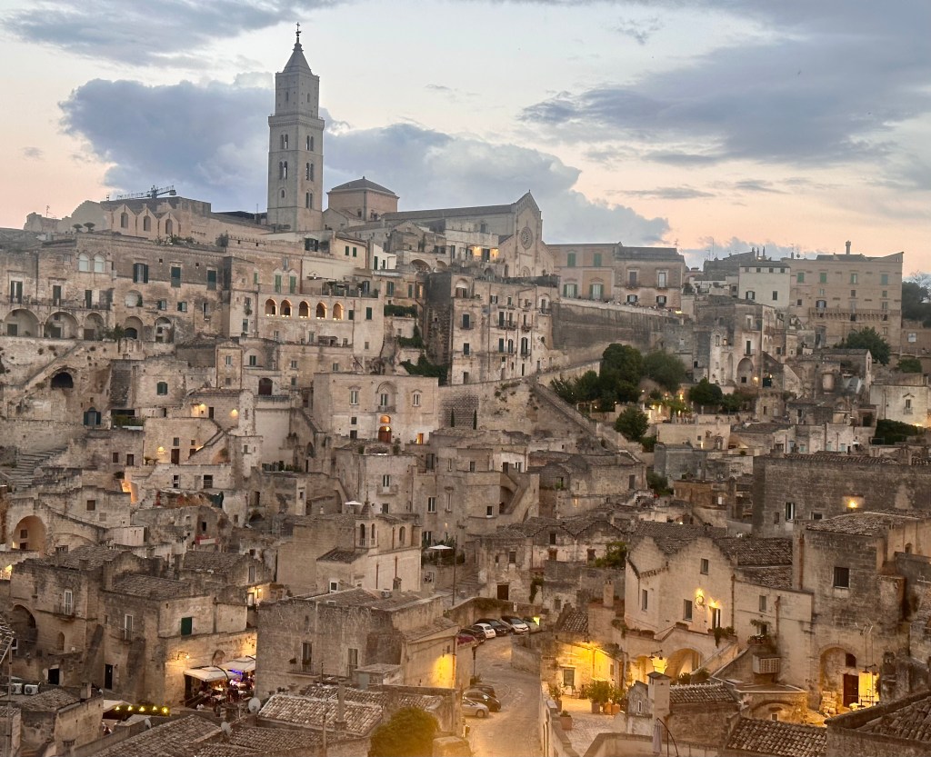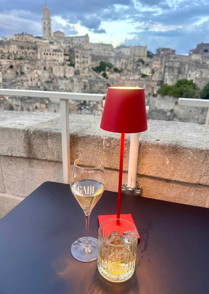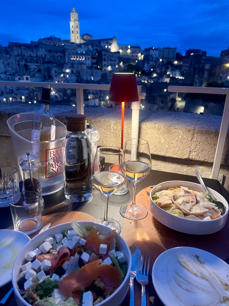 as well as happy hour with the sun setting over the sassi and the old town lighting up like a Christmas tree. The view was mesmerising and one where each time you looked out you saw another aspect that you hadn’t seen previously.