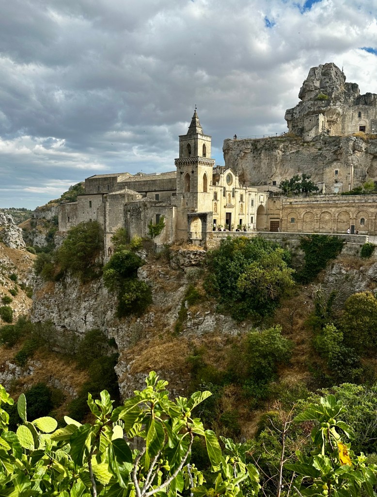 As there was only one other couple on the tour the guide took us to some of the more remote areas of the sassi including a cave that has been converted into a small souvenir shop run by a local man he knew well that allowed us to see how the caves are stacked on top of each other and pushed out sideways over time to create more space – fascinating to see how the local people lived for so long in this area. Across the square is the Cathedral of Maria Santisim of the Bruna & Sant’ Eustachio which dates to the 1200’s.